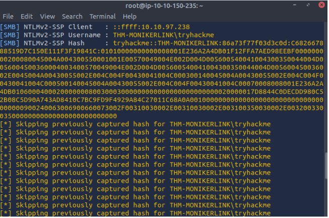 [SMB] NTLMv2-SSP Username : THM-MONIKERLINK\tryhackme