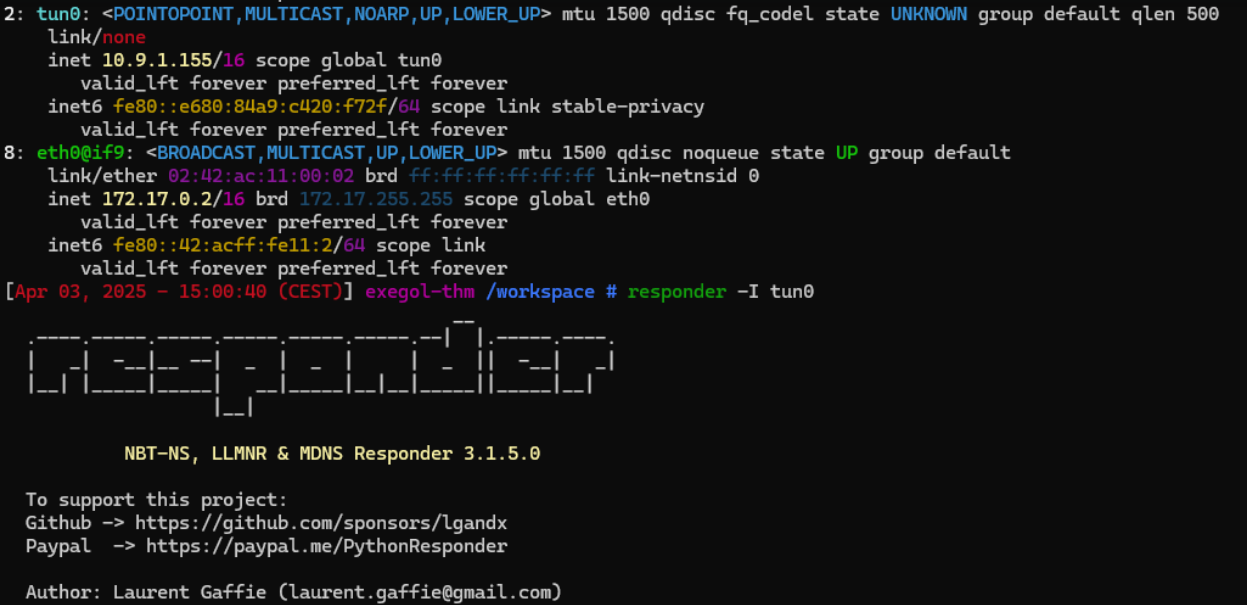 Ce lien déclenche une connexion SMB vers la machine de l’attaquant, permettant la capture d’un hash NetNTLMv2. Pour recevoir ces informations sur la machine attaquante, nous allons devoir utiliser un outil capable d'écouter le trafic SMB, tel que Responder.